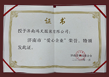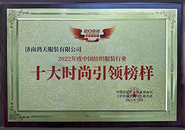 时光知味,岁月沉香。 近几年,鸿天集团荣获国家、省、市级荣誉三十余项,知识产权三十余项,获得山东省高端品牌培育企业、中国服装成长型品牌-电子商务品牌、中国服装成长型品牌-原创设计师品牌、山东知名品牌荣誉等荣誉;荣获2023中国纺织服装行业年度精锐榜-十大可持续发展榜样、2022-2023年山东省纺织服装行业-社会责任贡献奖、2022-2023年山东省纺织服装行业-乡村振兴推动奖、2023年山东省乡村振兴贡献单位等荣誉。
